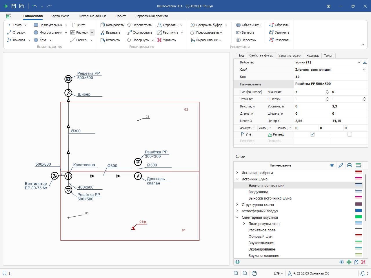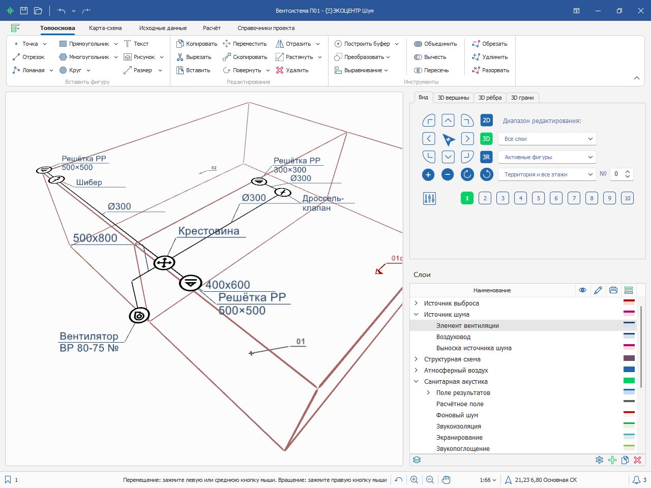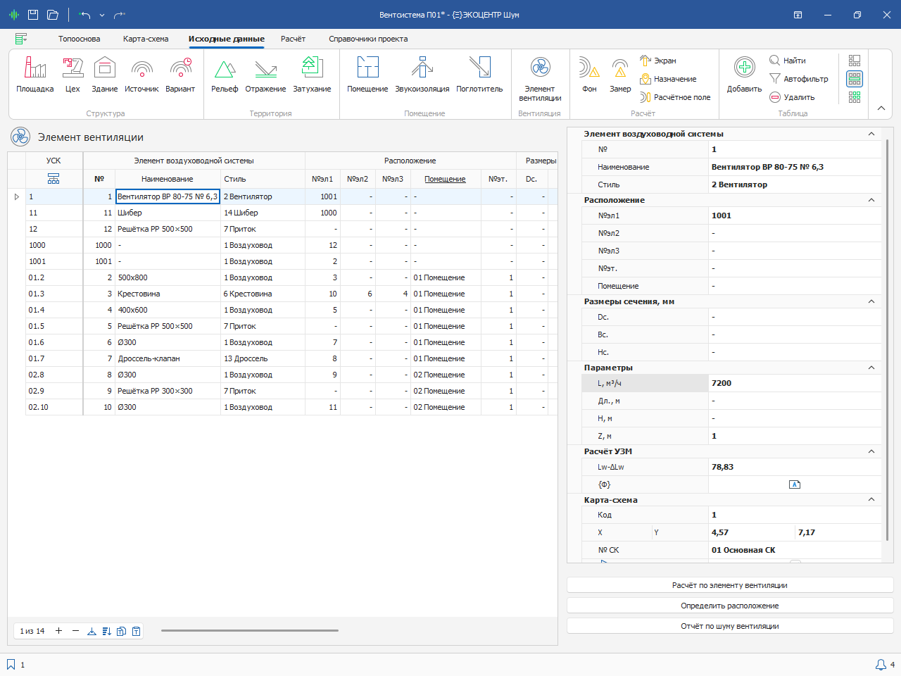 Программа «Шум вентиляции» предназначена для разработки и оценки мероприятий по защите от шума оборудования систем вентиляции, воздушного отопления и кондиционирования воздуха на основе точного акустического расчёта и выбора систем шумоглушения в соответствии с СП 271.1325800.2016 «Системы шумоглушения воздушного отопления, вентиляции и кондиционирования воздуха».
